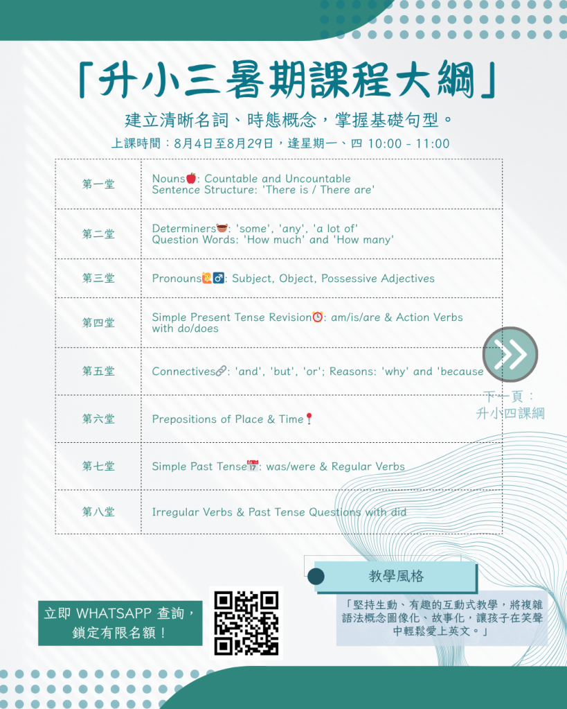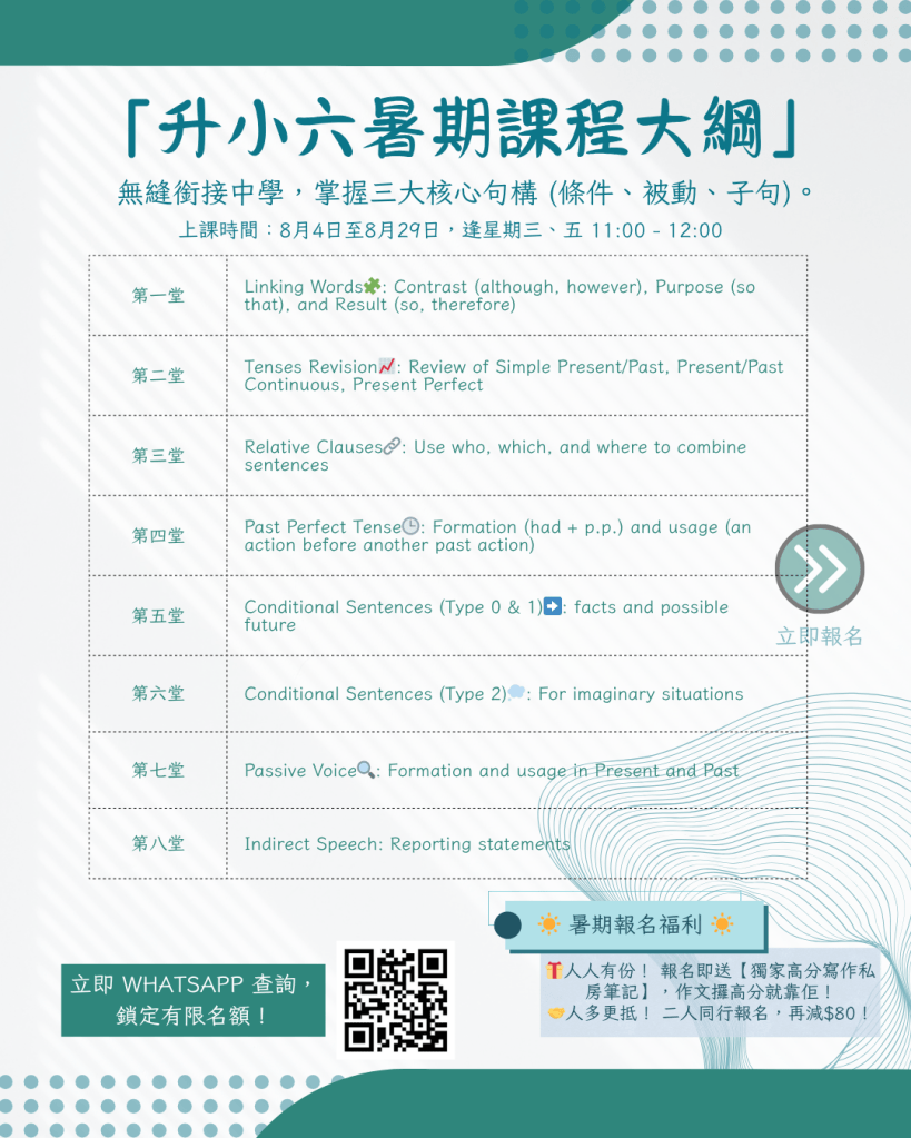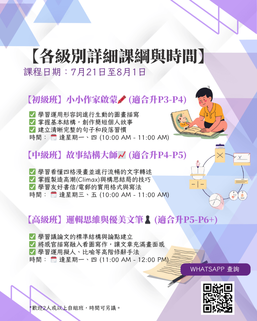 2025暑期課程 – 寫作班及文法班